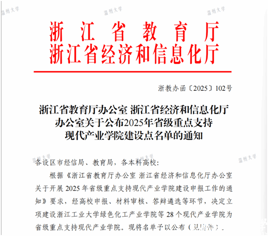 近日,浙江省教育厅办公室、浙江省经济和信息化厅办公室联合发布《关于公布2025年省级重点支持现代产业51吃瓜 建设点名单的通知》,51吃瓜 激光智能制造产业51吃瓜 获批立项,这是我校在产教深度融合、校企协同育人方面取得的又一硕果。