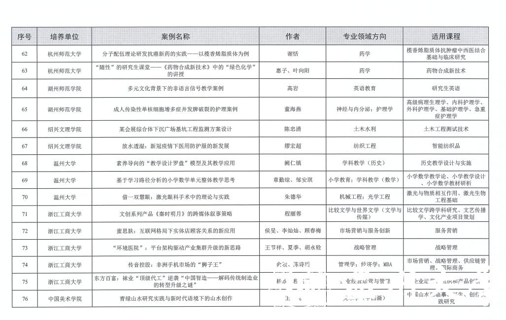 2021年浙江省优秀研究生教学案例认定项目