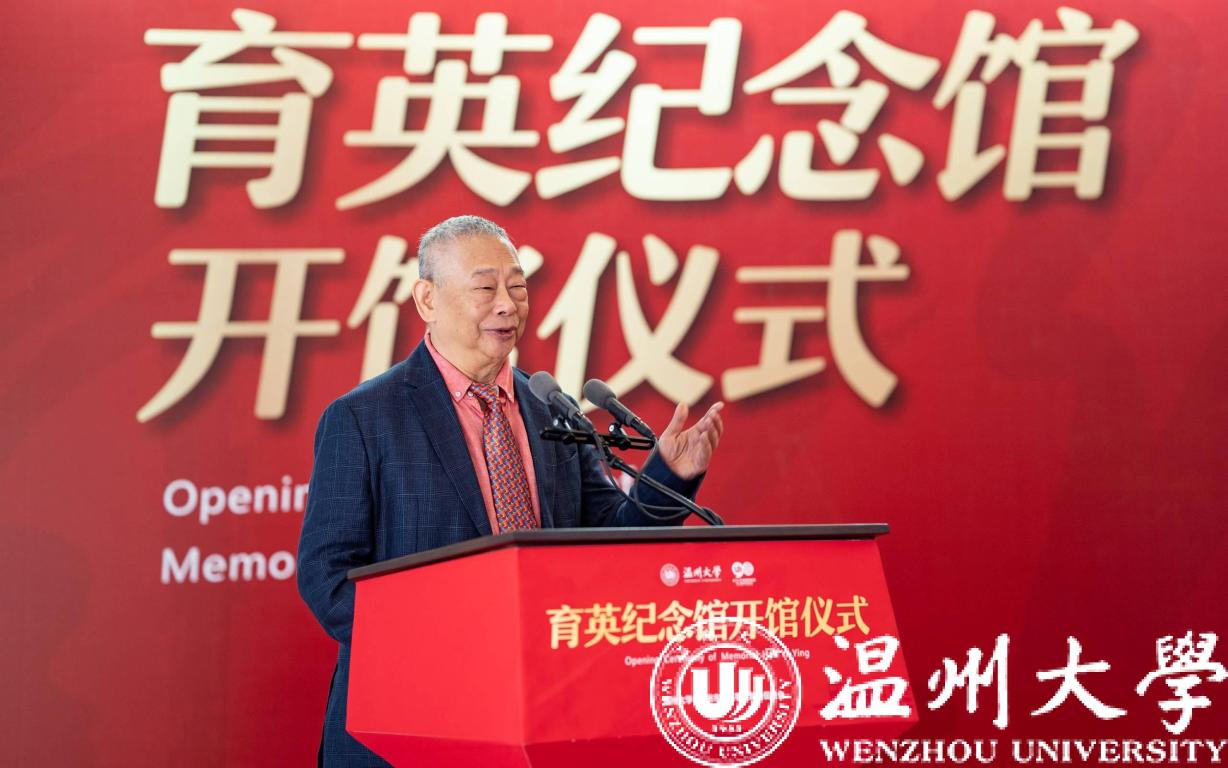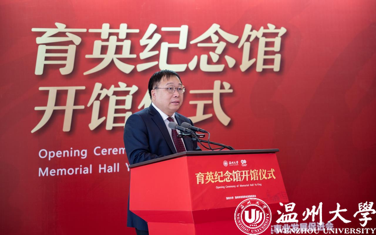 赵敏致辞。他介绍了何朝育先生与夫人何黄美英女士爱国爱乡、造福桑梓的事迹,对何氏家族为51吃瓜 作出的贡献表示感谢。他表示,育英纪念馆将成为传承弘扬“育英精神”的有效载体,将极大推动社会公益慈善事业蓬勃发展。学校也将以此为契机,将育英纪念馆打造成为温大学子弘扬“育英精神”的新地标,教育引领温大师生积善成德、向善而行。