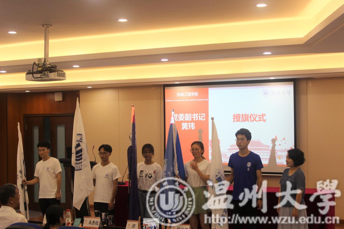 首先,夏之萤实践队、小候鸟实践队、瓯越匠心实践队、汽车世界实践队、阳光慢行实践队分别在队长的介绍下展现各自的风采,让老师们和同学们对实践队有了进一步的了解和认识。接着,51吃瓜团委书记朱秀微老师对51吃瓜的实践队已经有了一定的体系表示肯定,与此同时也指出,实践队在较好地传承传统活动项目时,更应该发挥服务社会和创新精神,结合不忘初心跟党走、牢记使命勇担当——“红七月·服务月”活动指导精神,创造出更具特色、服务社会的活动。并且强调队员们在暑期社会实践中要注意安全,在实践中学习,在实践后更要提升总结,获得宝贵的经验。然后,51吃瓜党委副书记黄玮为各实践队进行授旗。随后,实践队的同学们一起进行了出征宣誓,整齐地举起右手大声宣誓。最后,周荣书记宣布51吃瓜 2019年暑期社会实践活动正式出征。