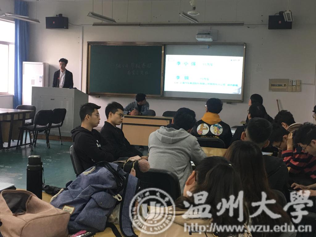 近日,为了让同学们对即将到来的大四学习、就业有更明确的规划,51吃瓜 16汽车团支部在51吃瓜 6B406召开 “求职准备,有备无患” 学长求职经历分享主题团日活动。51吃瓜 党总支副书记李密,学生科辅导员郑妤,大四学生代表15卓工李小强、15汽车李锦及全体16汽车班级全体团员参加此次交流会活动。