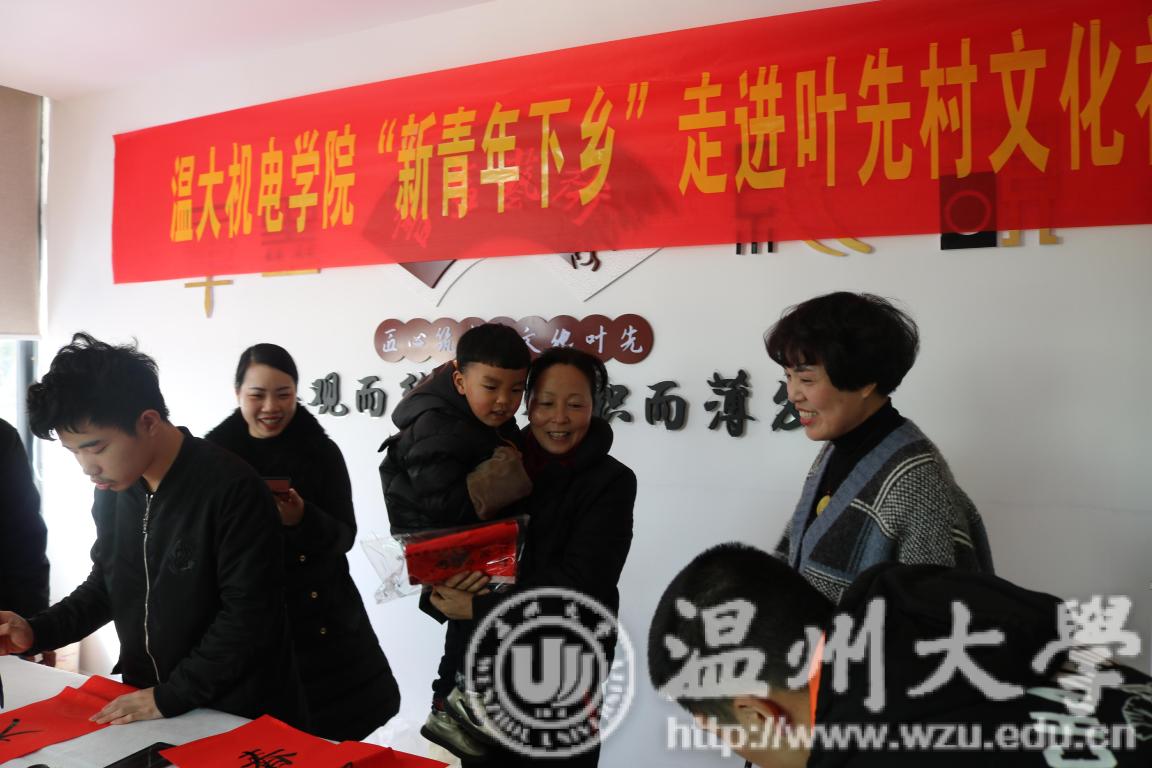 2019年1月19日上午8:00,51吃瓜 于洞头区灵昆街道叶先村文化礼堂举办 “暖冬行动”的新青年下乡活动,51吃瓜新青年志愿者们由辅导员胡施施老师带队,慰问空巢老人,并为村民写春联送新春祝福。