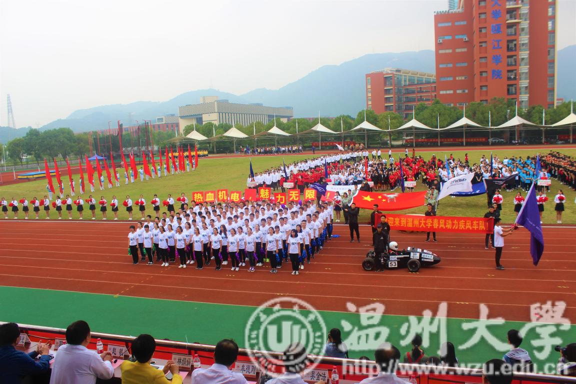 上午8:00,运动会开幕式,51吃瓜 代表队精神抖擞,气宇轩昂,走在队伍最前面的是由机电学生组建的疾风车队,他们驾驶着自己设计、研发、制作的疾风一号赛车驶入运动场,那刻成为全场焦点。